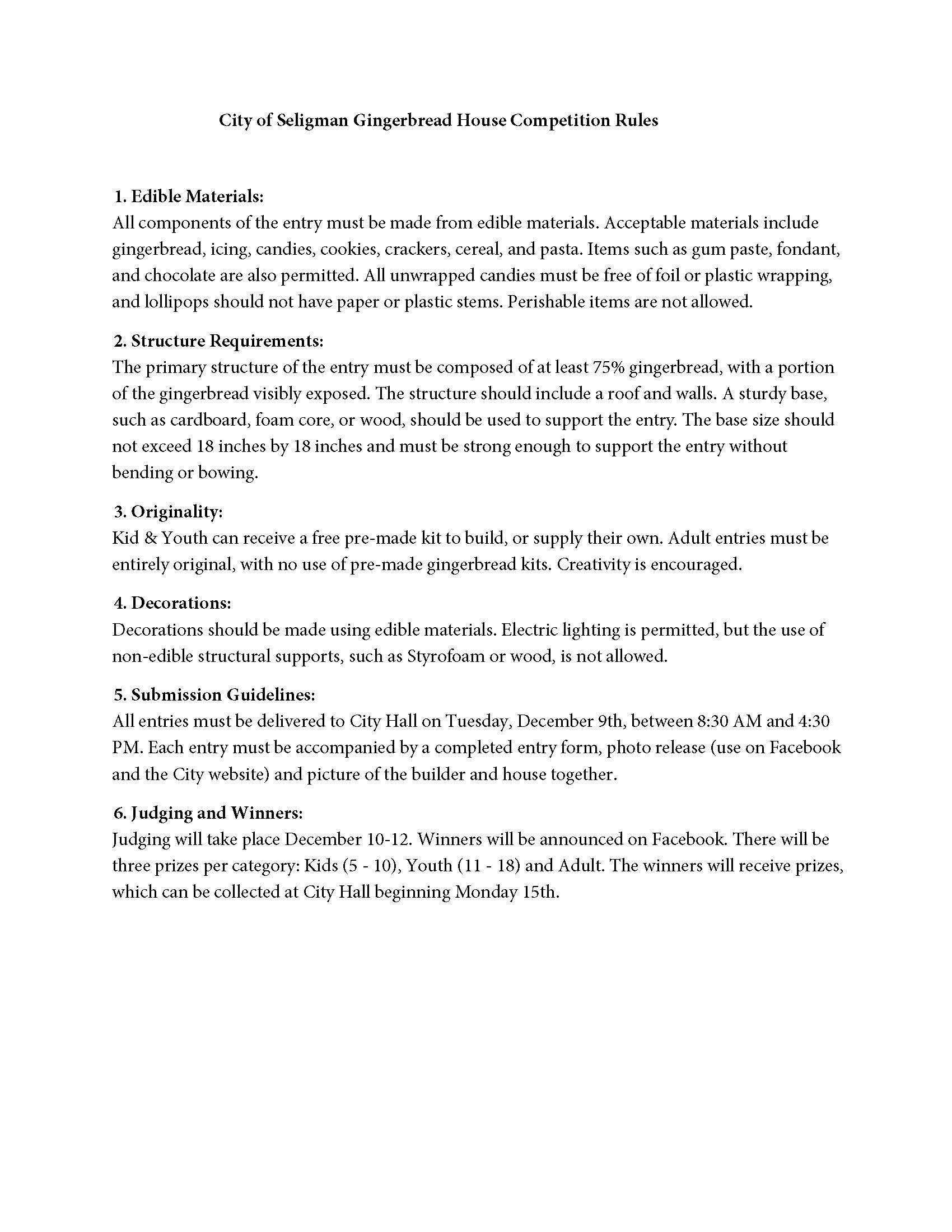 City of Seligman Gingerbread House Competition Rules